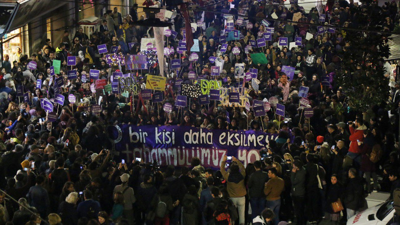 İstanbul’da İstiklal Caddesi’nde yapılmak istenen yürüyüşe Beyoğlu Kaymakamlığı önce izin vermedi, tepkiler üzerine yasak kararını geri çekti. Akşam saatlerinde Tünel Meydan’da “Bir kişi daha eksilmeye tahammülümüz yok” diyerek bir araya gelen binlerce kadın, İstanbul Barosu’nun önüne yürüdü. Buradaki açıklamanın ardından barikatı aşarak yürüyüşe devam etmek isteyen kadınlara polis, biber gazı ile saldırdı.