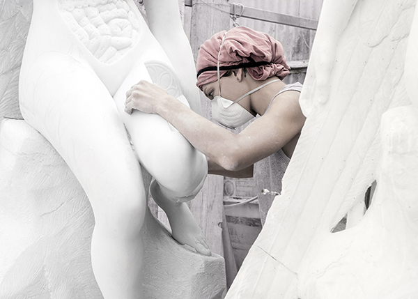 Henryk Hetflaisz. Evelina Ravaglia, Sem Atölyesi’nde Damien Hirst’ün melek heykeli üstünde çalışıyor