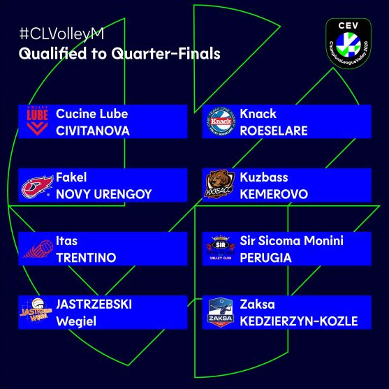 CEV Erkekler Şampiyonlar Ligi çeyrek finalinde ilk maçlar 3-5 Mart, ikinci maçlar 10-12 Mart tarihlerinde oynanacak.