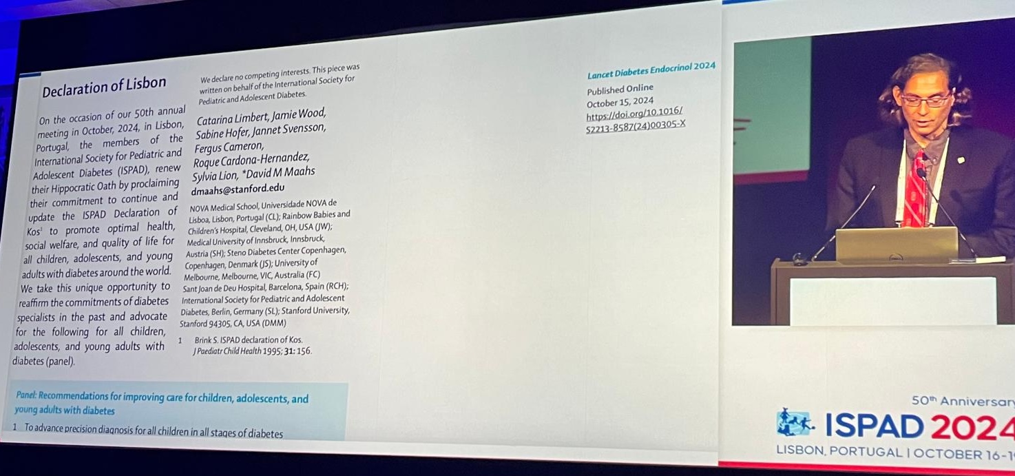 Uluslararası Pediatrik ve Adolesan Diyabet Derneği (ISPAD), 50. Yıllık Toplantısı’nı yaptığı Lizbon’da 15 Ekim 2024 günü, başta tip 1 diyabetin iyileştirilmesi, diyabet teknolojilerine adil erişim, okulda ve işyerlerinde güvenli ortam gibi bizlerin de yakından uğraştığı konuları kapsayan bir bildirge yayınladı. Aşağıda tam metnini bulacağınız bildirge birçok konuyu kapsayan güçlü bir metin ve kuruluşumuzun sosyal konulara olan ilgisi için yeni bir adım anlamı taşıyor. Ben bu bildirgeden de heyecanlandım ve yine her gün üzerine kafa yorduğumuz birçok konunun kelimelere dökülmesinden etkilendim. Tabi esas konu, bu bildirgenin gereklerini yerine getirmek; bunun için devlet kurumları ile yakın iş birliği yaparak yeni inisiyatifler geliştirmemiz gerekiyor.