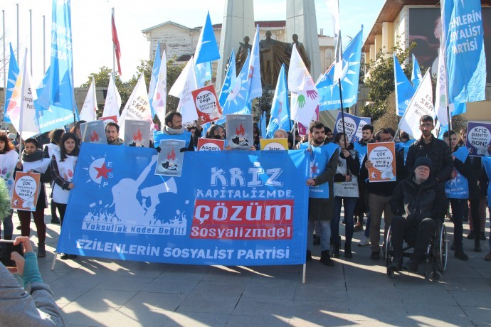 Geçtiğimiz hafta Hatay’da ‘Çocuklarım aç’ diyerek kendini yakarak yaşamına son veren yurttaşı hatırlatarak konuşmasına başlayan ESP Eşbaşkanı Şahin Tümüklü, sorumlusunun AKP iktidarı olduğunu söyledi: