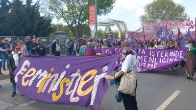 1 Mayıs’ta özellikle büyük kentlerin alanlarında feminist hareketin ana şiarlarının sol ve demokratik muhalefetin hemen hemen her kesimine yansıdığını görmek sevindiriciydi. Sadece bu satırları yazanın bir tespiti değil bu, Maltepe’de feministler pankartı ardında yürüyen pek çok kadının ortak görüşü… Sola kendimizi anlattığımıza sevinelim mi, eşitlikçi olması beklenen sol örgütlerdeki erkek egemen bürokratik yapıların kırılmalarının bu denli gecikmesine üzülelim mi bilemedik doğrusu… Maltepe’de kadınlar tüm kortejlerde mor bayraklarıyla ve kendi ezilme deneyimleri üzerinden formüle ettikleri talep ve isyanlarıyla ciddi bir politik güç oluşturuyordu.