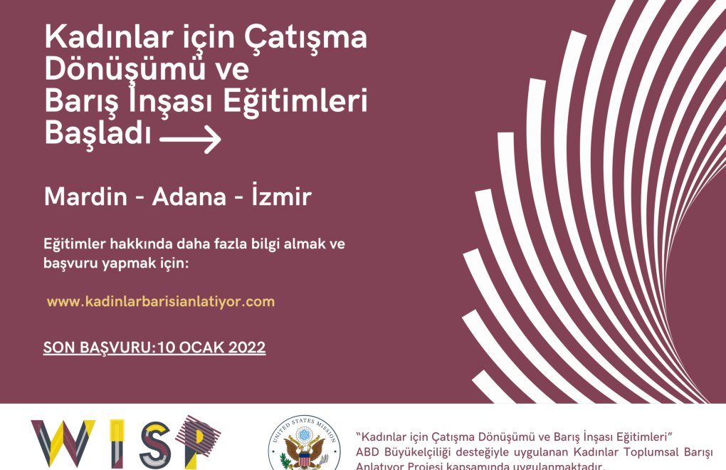 Bu eğitimler, barış inşası ve çatışma dönüşümü konularına ilgili, tercihen sivil toplum çalışmaları tecrübesi olan, yukarıda belirtilen kentlerde yaşayan kadınların katılımına açık.