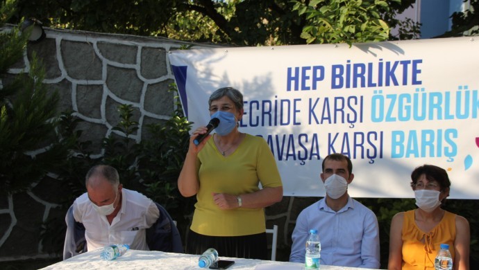 HDP’nin Demokratik Mücadele Programı’nın 3’üncü aşaması kapsamında İzmir’deki temaslarını sürdüren Demokratik Toplum Kongresi (DTK) Eş Başkanı Leyla Güven, Demokratik Bölgeler Partisi (DBP) Eş Genel Başkanı Keskin Bayındır, Halkların Demokratik Kongresi (HDK) Eş Sözcüsü Sedat Şenoğlu ile HDP milletvekilleri Pero Dündar, Necdet İpekyüz, Musa Piroğlu ve Gülistan Kılıç Koçyiğit, Bayraklı ilçesinde düzenlenen halk buluşmasına katıldı.