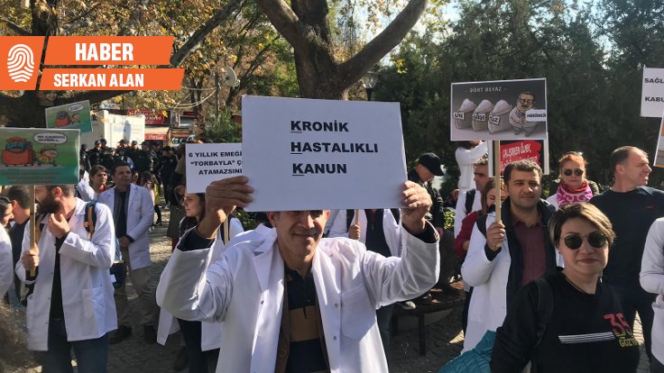 “Yaşamak Yaşatmak İstiyoruz”, “Hükümet al torbanı başına çal” sloganlarıyla önlükleriyle Kuğulu Park’ta toplanan doktorlar, “6 Yıllık Emeğimizi ‘Torbayla’ Çöpe Atamazsınız”, Kovir Misen Ağam”, “Beyaz Direniş Var Dediler Geldik”, “ Mekteb-i Tıbbiye-i Şahane KHK’lar Bahane”, “Çalışırken Ölmek, Öldürülmek İstemiyoruz”, “Sağlıksızlıklaştıran Yasayı Kabul Etmiyoruz” dövizleri taşıdılar.