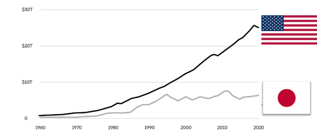 İkinci Dünya Savaşı’ndan yenik çıkan Japonya sahalara hızlı bir dönüş yaptı. 1960’lardan sonra, tıpkı Deng Xiaoping sonrası Çin’de olduğu gibi hızlı bir büyüme gerçekleştirdi. Toyota, Sony, Honda gibi firmaları dünya sahnesine çıkardı. Bu firmalar Amerika’da ucuz ama dayanıklı Japon arabası rüzgarını estirdi. Birçok farklı sektörde makul fiyata, makulün üstü kalitede yenilikçi ürünler piyasaya sürdüler. Sony Walkman’ler, Casio asker saatleri, Canon kameralar tüm dünyayı ele geçirdi. 80’lerin sonuna gelindiğinde Japonya artık gelişmiş ülke sıfatını elde etti; 1989 yılına gelindiğinde dünyadaki en değerli 50 firmanın 32’si Japon firmasındandı. Artan borsa ve düşük faizlerle emlak fiyatları uçuşa geçti; Tokyo’da başını sokacağı evi olan biri, dolar milyoneri oldu. Hedef, 10 yıla kalmadan Amerikan ekonomisini geçmekti; Japonya artık bir dünya lideriydi.