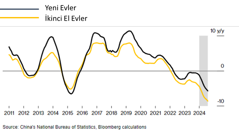Son olarak, düşük enflasyonu da bu tabloya eklememiz gerekiyor. Tüm dünya COVID ve sonrası dönemde yüksek enflasyon ile boğuşurken Çin ise tam tersine ülkedeki enflasyonu artırmaya çalışıyor. Hane halkının varlığa oranla artan borçları ve azalan tüketim iştahı, arz-talepteki fazla kapasite ile birleşince Çin, Japonya’da olduğu gibi bir deflasyon sarmalına girdi. 2024 Eylül ayı geçen enflasyonu yalnızca yüzde 0,4 olarak gerçekleşti.