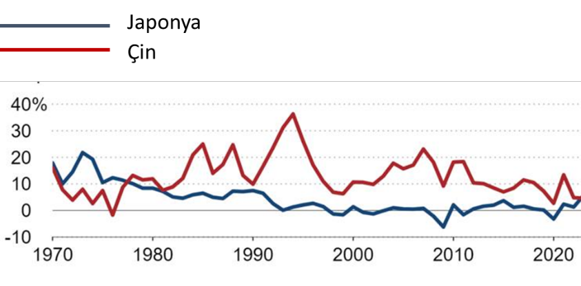 Çin ve Japonya’nın Gayri Safi Yurtiçi Hasıla (GSYİH) büyüme oranları