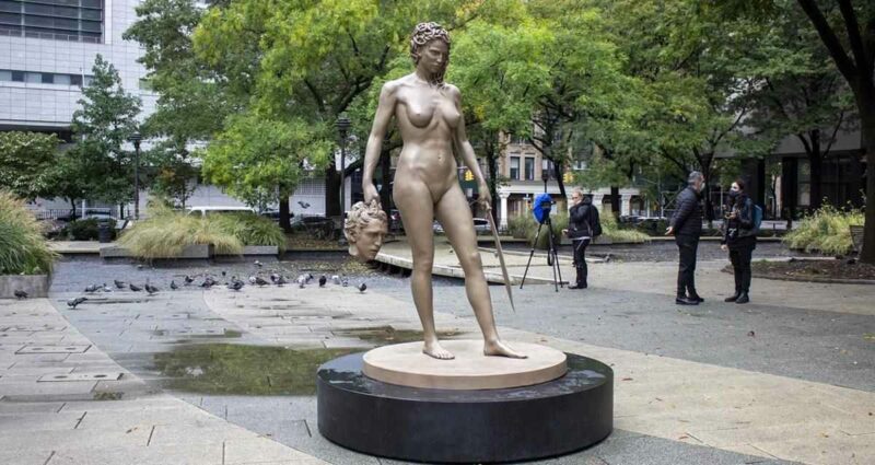 Heykel, Manhattan Collect Pond Park’ta, MeToo hareketiyle anılan davaların görüldüğü New York Ceza Mahkemesi’nin karşısında sergilenecek.