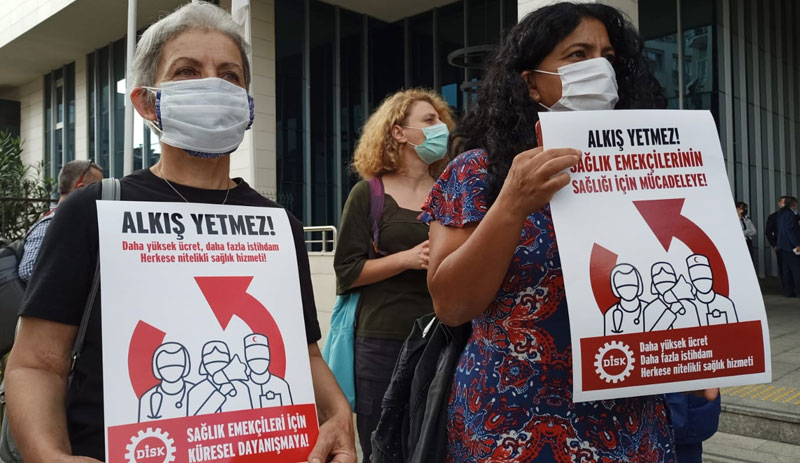 Devrimci İşçi Sendikaları Konfederasyonu (DİSK), Sağlık Çalışanları için Küresel Eylem Haftası dolayısıyla İstanbul Beyoğlu’ndaki Taksim Eğitim Araştırma Hastanesi önünde eylem yaptı.