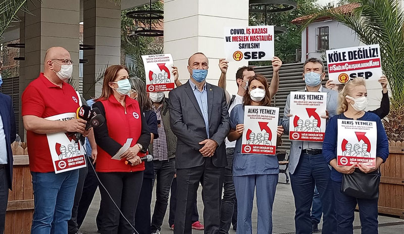 “Bütün sağlık çalışanlarına aşı yapılması, Covid-19 meslek hastalığı sayılması, sağlık emekçilerinin çalışma saatlerinin kısatılması ve yıllardır atama bekleyen, işsizlikle mücadele eden sağlıkçılar için gerekli atamaların yapılması taleplerimizdir.”