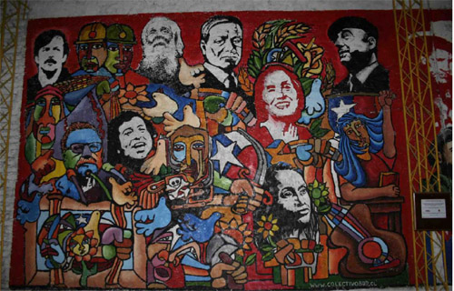 Santiago’ya bağlı La Victoria komününde günümüze ait müraller. La Victoria, Santiago’da sakinlerinin toma olarak adlandırdığı birkaç yerleşimden biridir (toma kelimesi, İspanyolca’da “almak” anlamına gelen tomar fiilinden gelir). Yerel yönetimin 15 yıldır konut taleplerine cevap vermediği bir grup yoksul, nihayet 30 Ekim 1957’de, kamuya ait 37 hektarlık bir araziyi işgal eder ve sahiplenir. Ardından insanlar kendi evlerini ve sokaklarını inşa etmeye başlarlar. Zamanla bölge, kendi içine kenetlenmiş, birlik ve dayanışmanın damgasını vurduğu bir semte dönüşür. 1973’teki darbeden sonra La Victoria cunta yönetimine direnişin ana odaklarından biri olur. Santiago’daki diğer pek çok işçi sınıfı mahallesi gibi, 1983-86 yılları arasındaki cunta karşıtı ayaklanmalarda La Victoria sakinleri de ön saflardadır. Barikat ve hendeklerin yanı sıra, müraller de bu direnişin ayrılmaz bir parçası olmuştur.