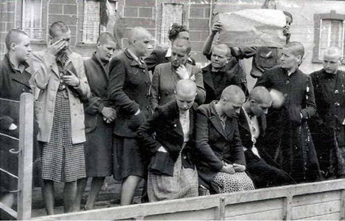 Saç kazıma ve teşhir cezaları yakın tarihte Avrupa’nın dört bir köşesinde, ideoloji ayırt etmeksizin yaygın ve sistematik bir şekilde uygulandı. Şimdi, üzerinden neredeyse seksen yıl geçtikten sonra, tarihten bir utanç vesikası olarak değil, bu defa da bu ülkenin “işbirlikçilerine” gözdağı vermek için gündeme getiriliyordu.