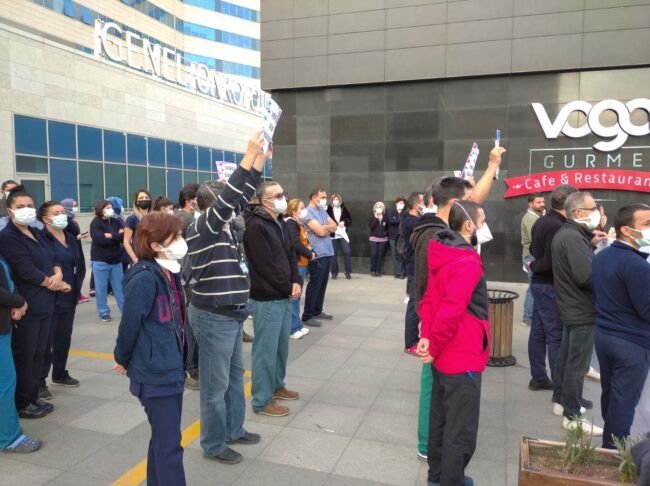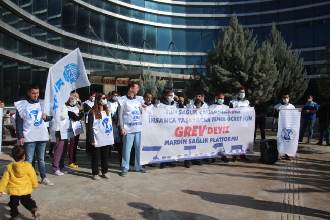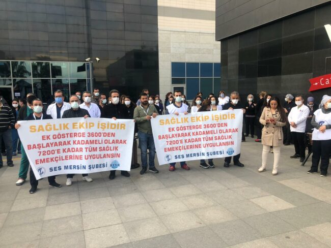 Mersin Şehir Hastanesi, Silifke Devlet Hastanesi ve Tarsus Devlet Hastanesinde iş bırakan sağlık emekçileri “insanca yaşayacak ücret, insanca çalışma koşulları istiyoruz” dedi. Tarsus ve Silifke devlet hastanelerinde de eş zamanlı olarak iş bırakma eylemi ve basın açıklaması yapıldı.